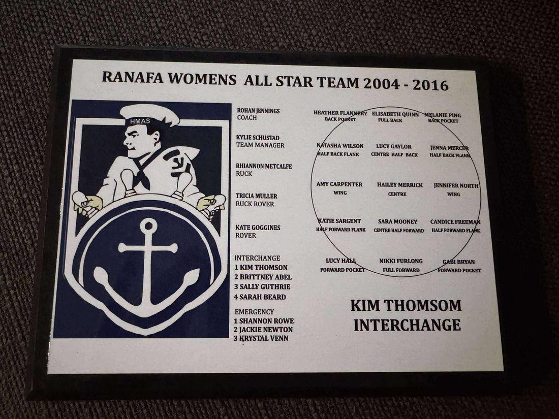 To recognise the best RANAFA female players from 2004-2016, the RANAFA Executive formulated the concept of establishing an All-Star team. Having won the ADF Australian Rules carnival three times during this period, the task of selecting just 27 players and administrators proved to be a difficult task.